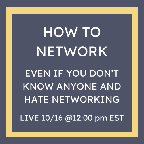 Join me on Thursday, 10/16 @ 12:00 pm EST on Zoom. I'll be sharing specific, actionable tips to use networking in your job search.