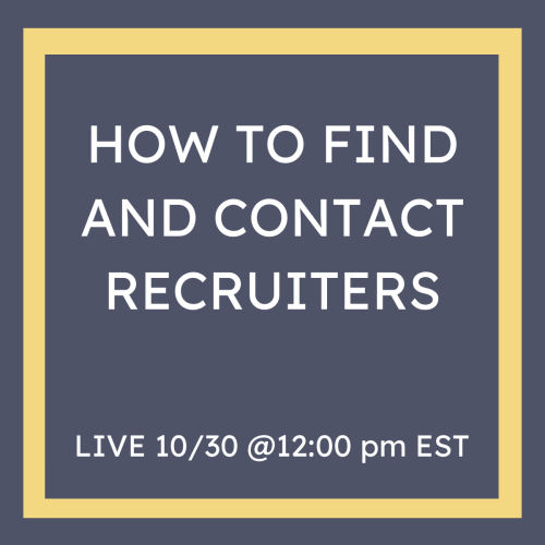 Join me on Thursday, 10/30 @ 12:00 pm EST on Zoom to learn how to contact recruiters.